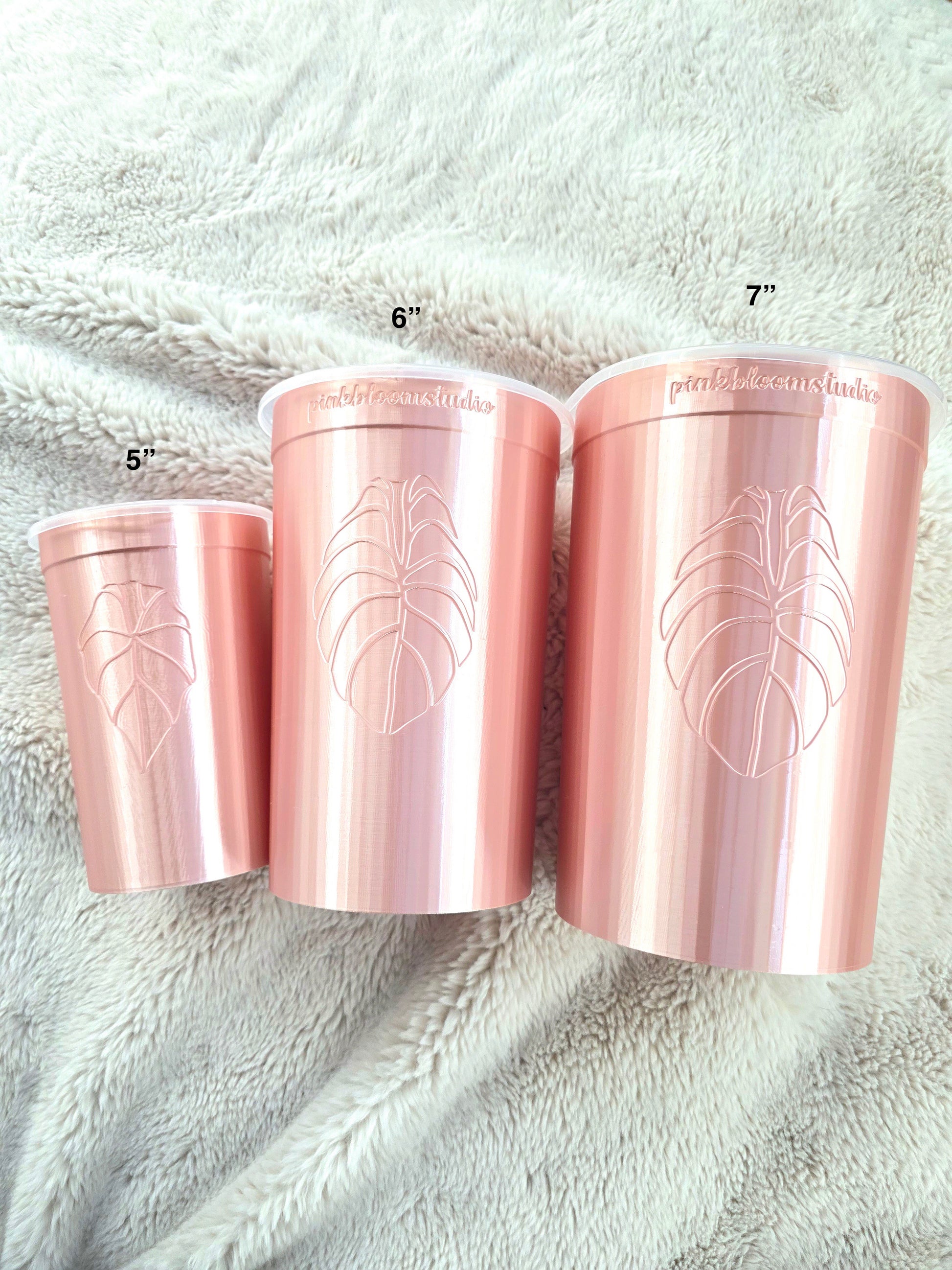 This modern 3D printed 7" cup features a beautifully hand-drawn, stenciled Anthurium leaf that adds a touch of botanical elegance to any shelf or cabinet. Outside of offering a clean and beautiful alternative, its opaque design helps reduce algae buildup, while encouraging healthier root growth.